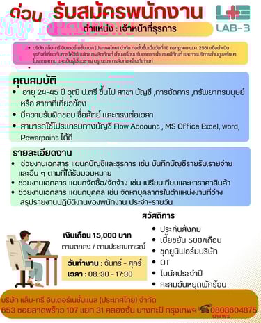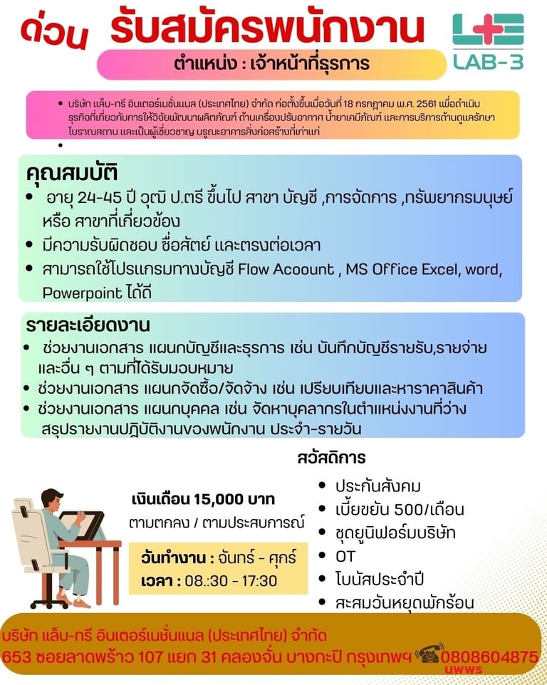รับสมัคร ตำแหน่งเจ้าหน้าที่ธุรการ