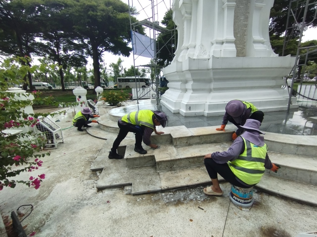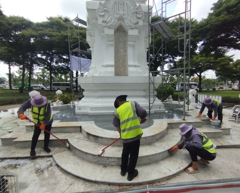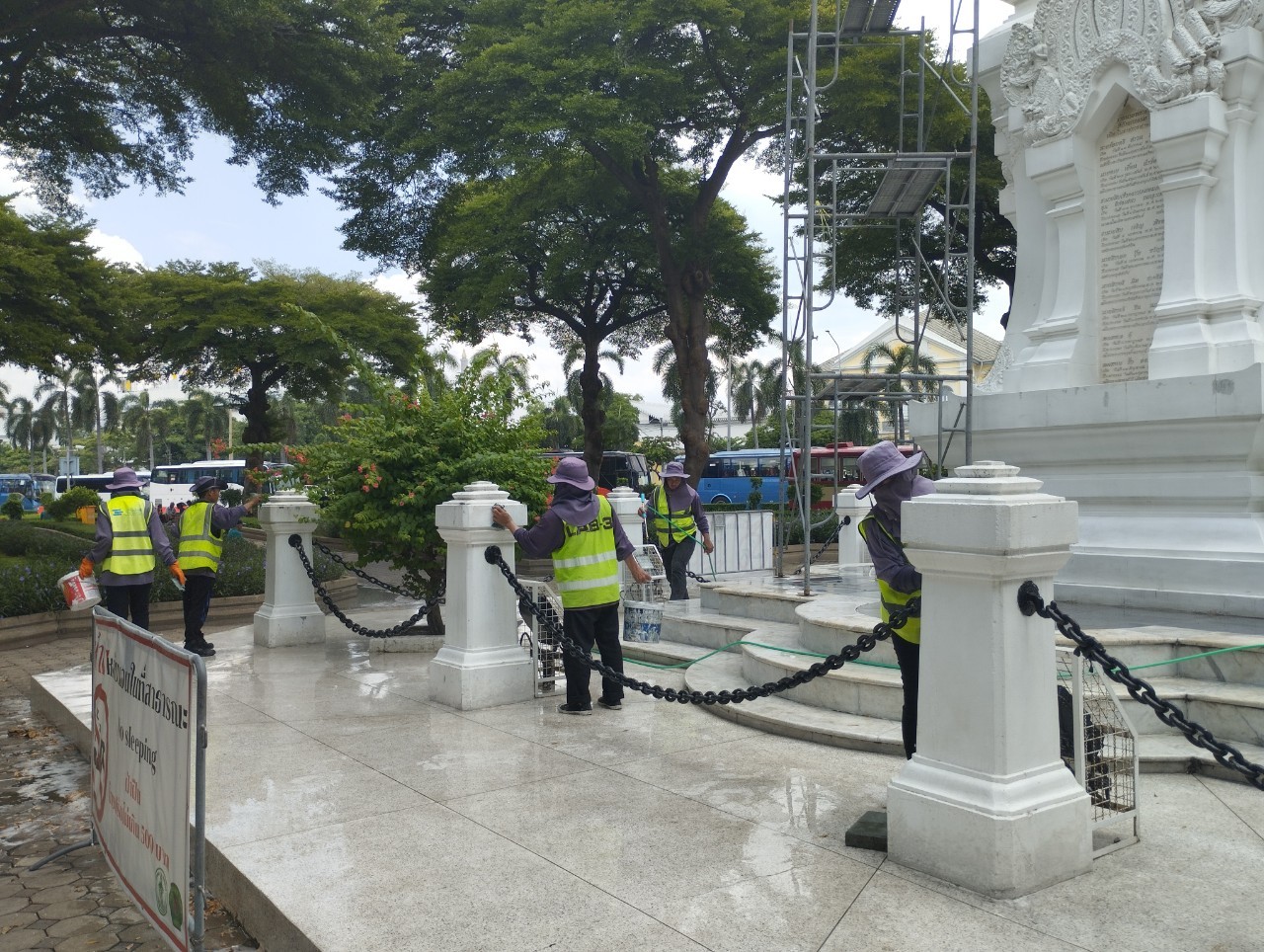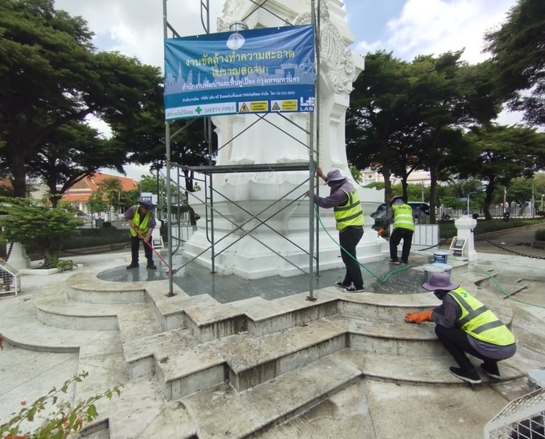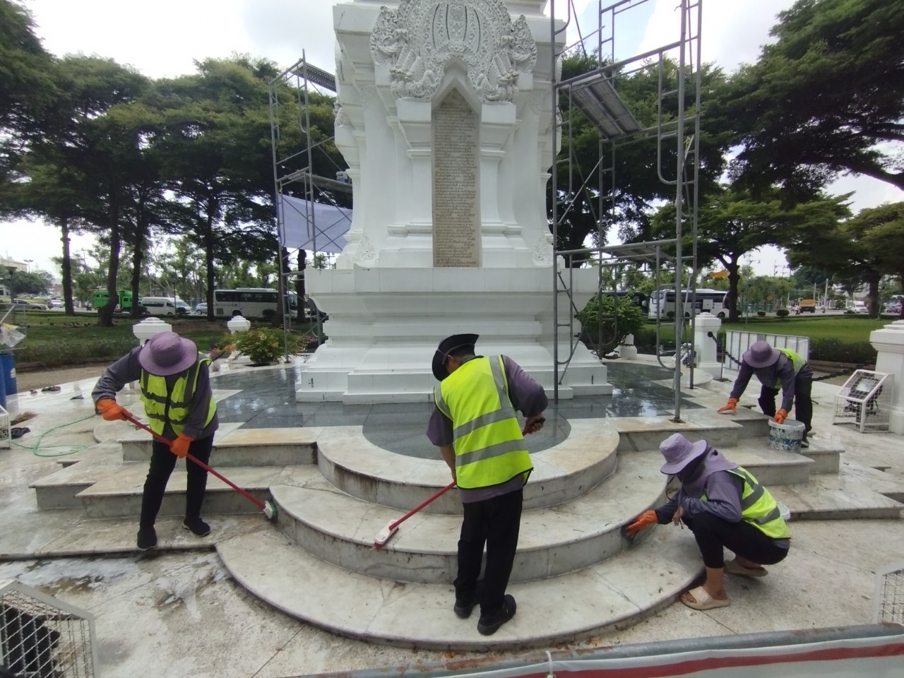 บริษัทแล็บ-ทรี อินเตอร์เนชั่นแนล (ประเทศไทย) จำกัด รับมอบหมายจาก กทม. ทำความสะอาดและขัดล้างอนุสาวรีย์ทหารอาสา เตรียมความพร้อมก่อนพิธีวางพวงมาลา