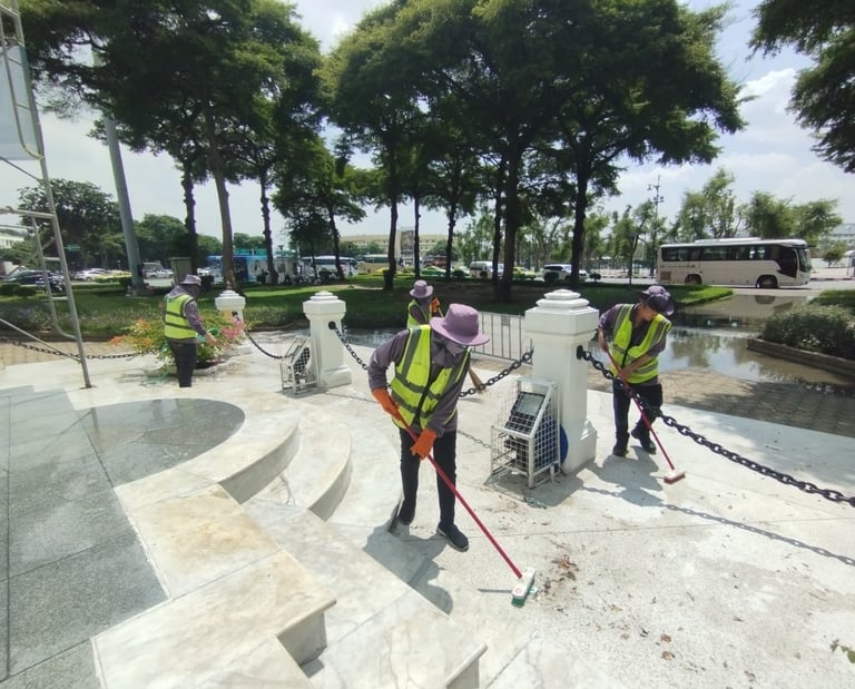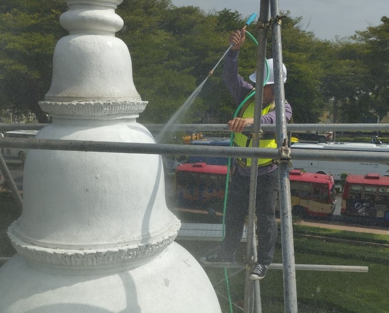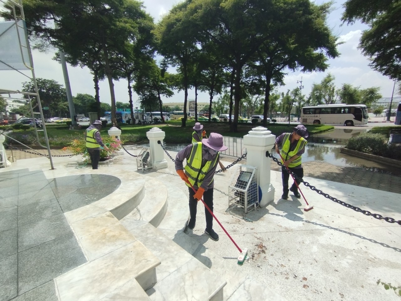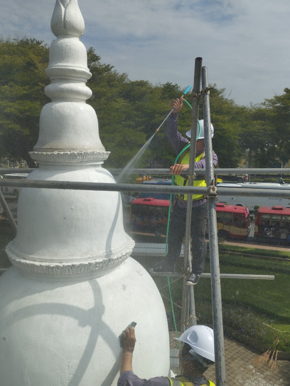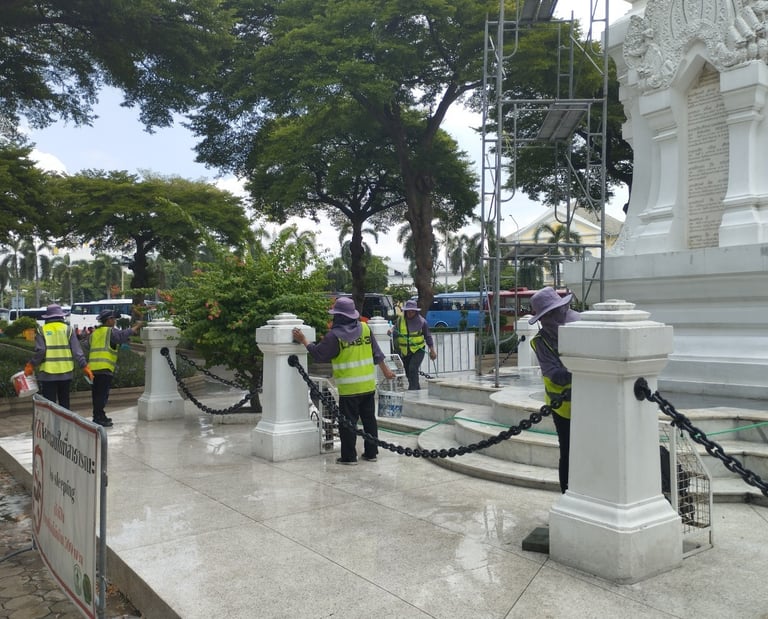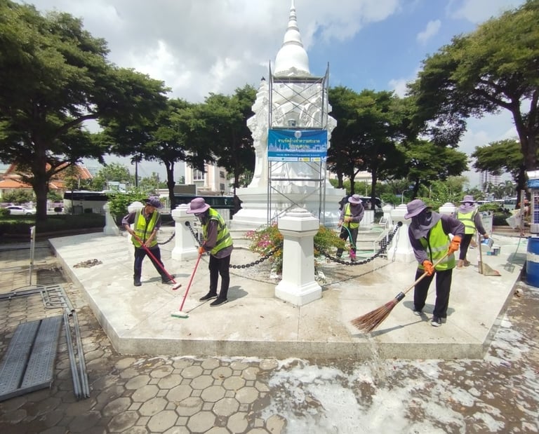 บริษัทแล็บ-ทรี อินเตอร์เนชั่นแนล (ประเทศไทย) จำกัด รับมอบหมายจาก กทม. ทำความสะอาดและขัดล้างอนุสาวรีย์ทหารอาสา เตรียมความพร้อมก่อนพิธีวางพวงมาลา