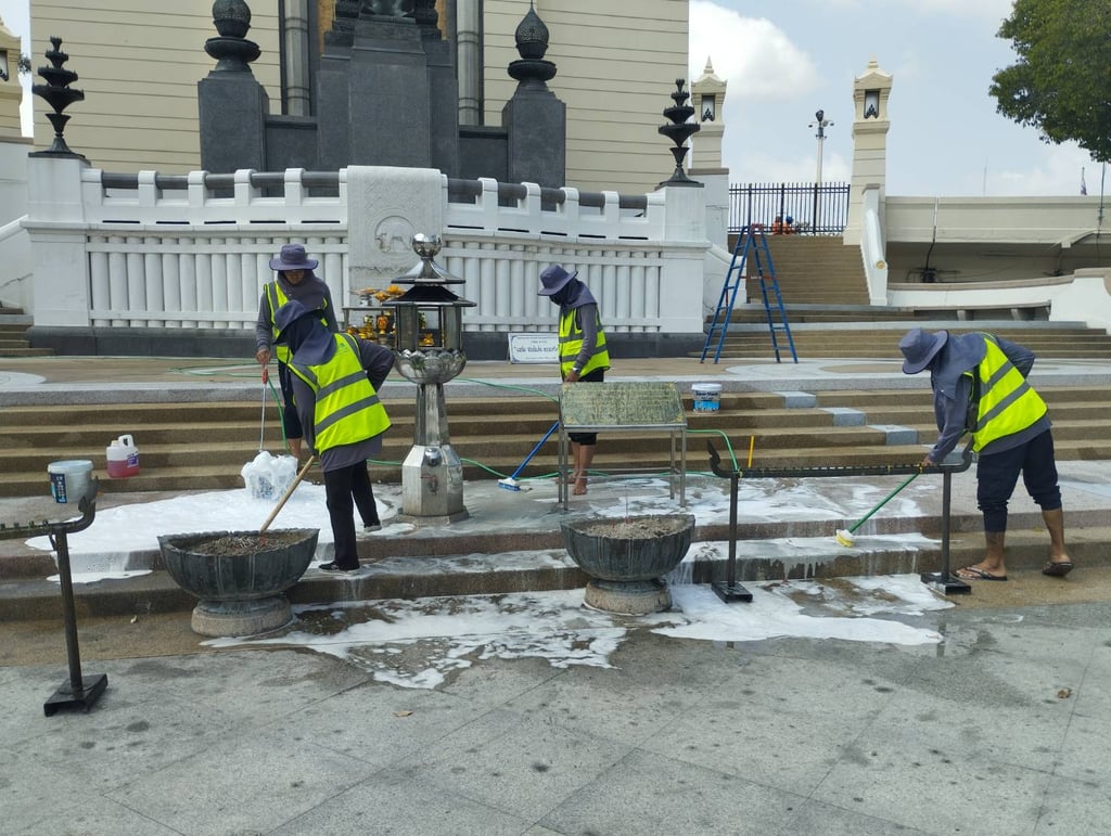 เมื่อวันที่ 24 มีนาคม 2567 เจ้าหน้าที่พนักงานดูแลรักษาโบราณสถาน กลุ่มงานอนุรักษ์เมือง ส่วนอนุรักษ์และฟื้นฟูเมือง สำนักการวางผังและพัฒนาเมือง เข้าดำเนินการขัดล้างทำความสะอาดบริเวณพระบรมรูปพระบาทสมเด็จพระพุทธยอดฟ้าจุฬาโลกมหาราช เพื่อจัดความเตรียมพร้อมสถานทีในการจัดงานพิธีถวายบังคมพระปฐมบรมราชานุสรณ์พระบาทสมเด็จพระพุทธยอดฟ้าจุฬาโลกมหาราช เนื่องในวันพระบาทสมเด็จพระพุทธยอดฟ้าจุฬาโลกมหาราชและวันที่ระลึกมหาจักรีบรมราชวงศ์ วันที่ 6 เมษายน 2567
