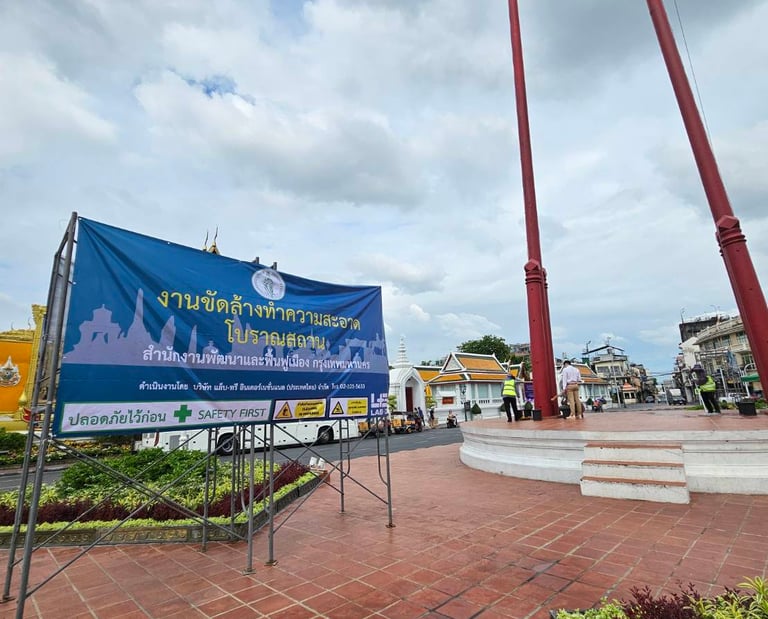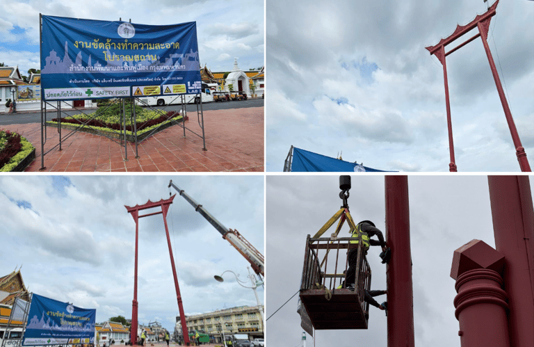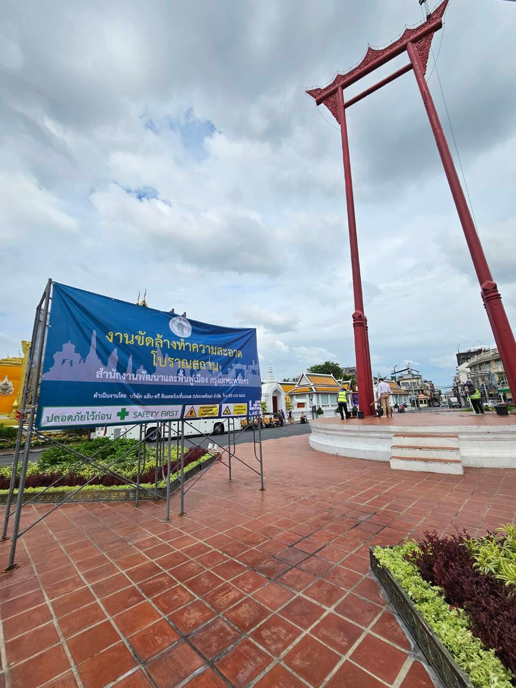 สวพ.ได้ว่าจ้างบริษัท แล็บ-ทรี อินเตอร์เนชั่นแนล (ประเทศไทย) จำกัด ทำความสะอาดอนุสาวรีย์ เสาชิงช้า