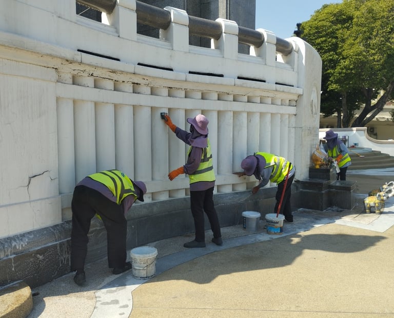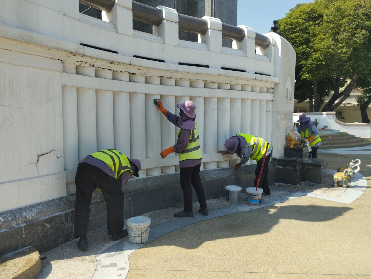 ด้วยความเชี่ยวชาญด้านการทำความสะอาดและบำรุงรักษาโบราณสถาน บริษัท แล็บ-ทรี อินเตอร์ฯ ได้ใช้เทคนิคและผลิตภัณฑ์เฉพาะทางที่อ่อนโยนต่อพื้นผิวของอนุสาวรีย์ แต่ทรงประสิทธิภาพในการขจัดคราบสกปรกและฟื้นฟูความงดงามดั้งเดิมของพระบรมรูปแห่งประวัติศาสตร์